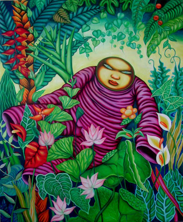 Sitting on flowers and leaves, Oil on canvas 100x122cm